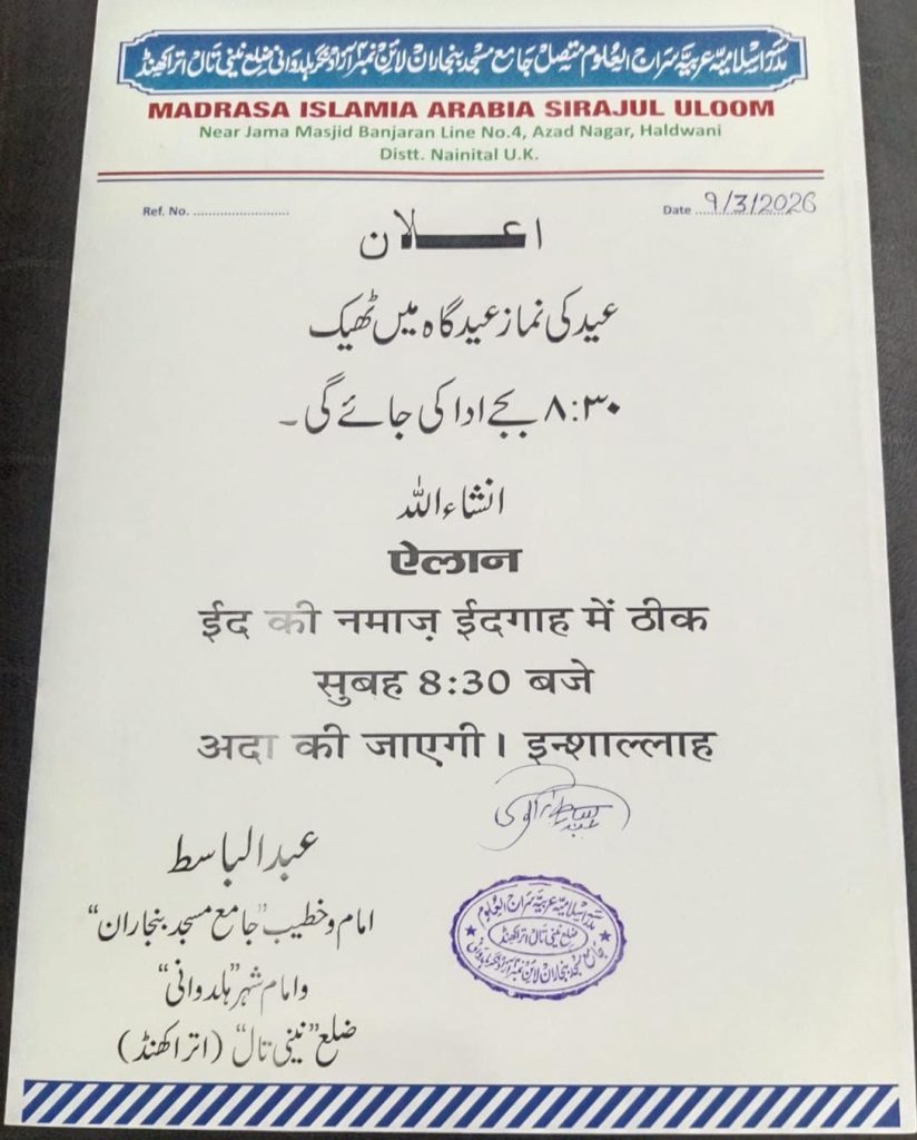 हल्द्वानी से बड़ी खबर | ईद-उल-फित्र 21 मार्च को मनाई जाएगी
