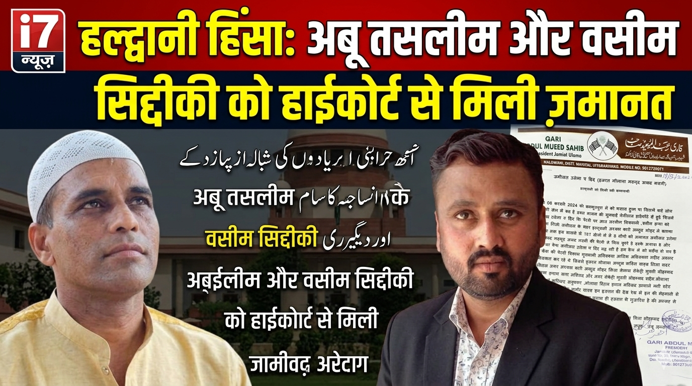 हल्द्वानी/नैनीताल | I7 न्यूज़ हल्द्वानी हिंसा मामले में आरोपियों को राहत देते हुए उत्तराखंड हाईकोर्ट ने अबू तसलीम…