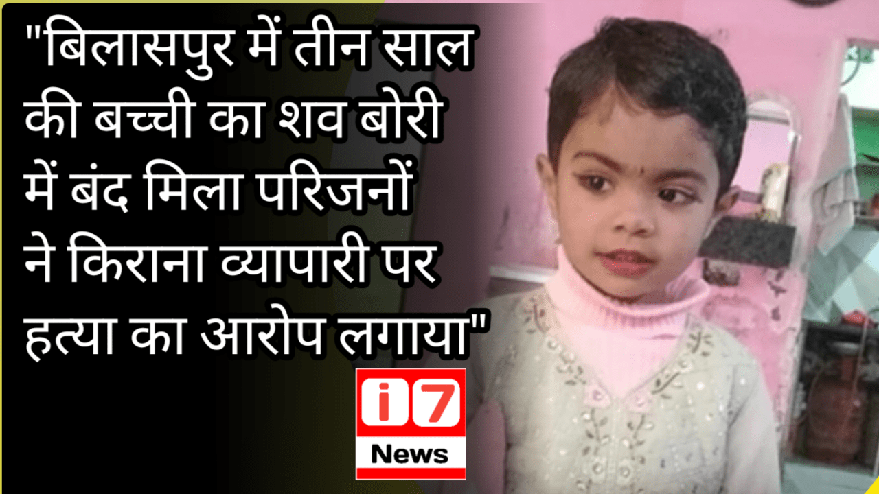 Read More →“बिलासपुर में तीन साल की बच्ची का शव बोरी में बंद, परिजनों ने किराना व्यापारी पर हत्या का आरोप लगाया” बिलासपुर में…