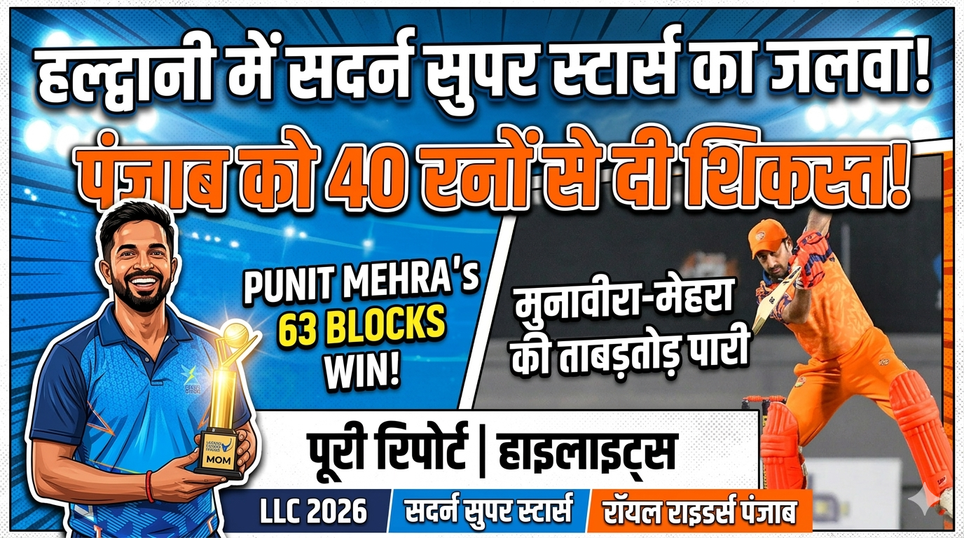 हल्द्वानी। इंदिरा गांधी अंतर्राष्ट्रीय क्रिकेट स्टेडियम में खेले गए लीजेंड्स लीग क्रिकेट (एलएलसी) 2026 के पांचवें मुकाबले में…