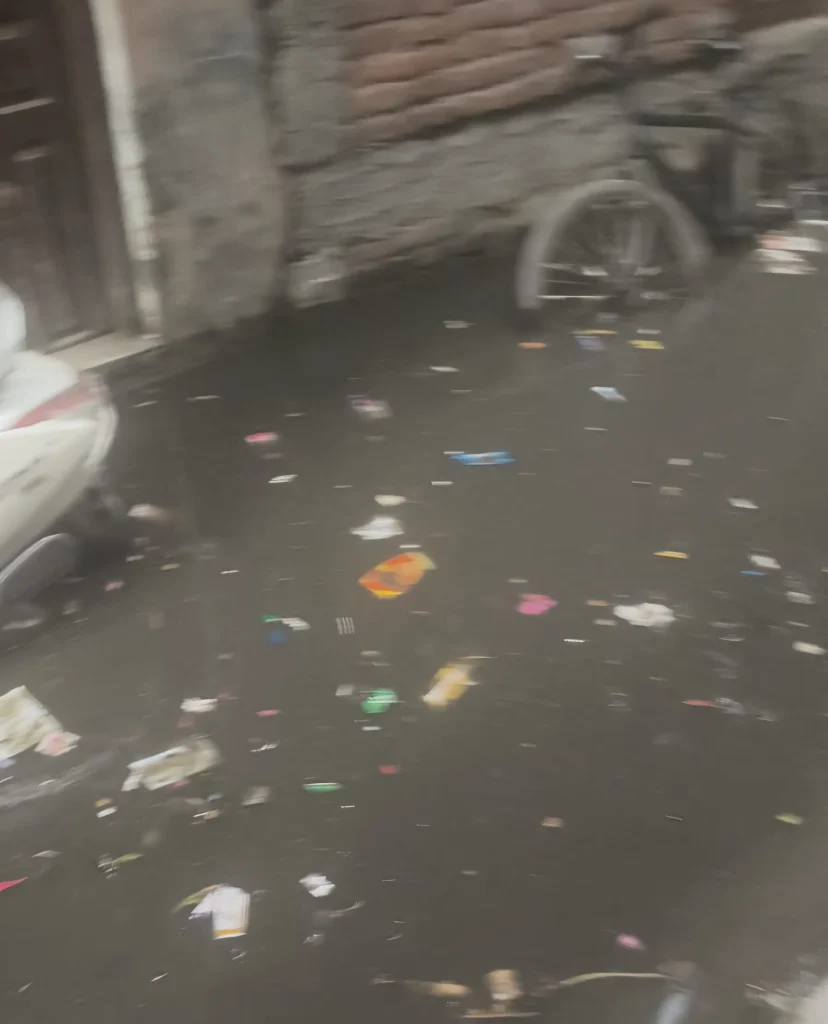 हल्की सी बारिश होते ही गलियां तालाब बन जाती हैं। सड़कों पर भरा गंदा पानी, तैरता कचरा और बदबूदार माहौल—यह तस्वीर किसी एक इलाके की नहीं, बल्कि पूरे क्षेत्र की हकीकत बन चुकी है।